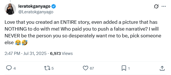 Lerato Kganyago Goes Head to Head With A Social Media User Linking Her Husband to Crime