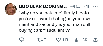 The two went on and on, with hectic tweets. The author of the tweet is still adamant that Lerato is being followed because of crime.