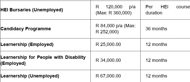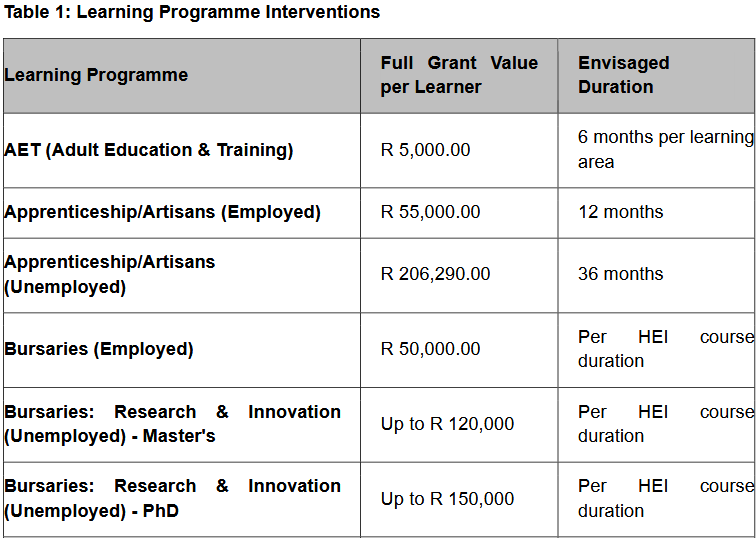 • Applicants must prioritize programmes listed on the Sector Priority Occupations Interventions List (SPOIL).